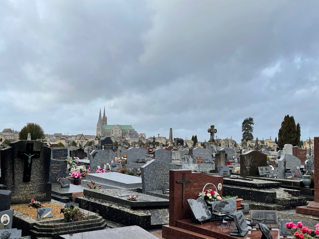 But as is often the case, inevitably the most interesting memory stems from the place that was never on the itinerary in the first place. After the long walk to the Maison Picassiette, navigating the river with green banks and narrow footover bridges, one decided to try and take a short cut back to the center of town. While Google maps is a boon to all travelers, it often compromises adventure for efficiency. One landed at the St.Cheron Cemetery. A sprawling cemetery, it is a place as much for the living as it is dead. The greenery, the flowers, the ornate tombstones, and the sheer color stemming from them all, smeared across the landscape make it a sight to behold. A modern-day necropolis, it is an experience much like Père Lachaise (Paris) and Novodevichy Cemetery (Moscow).