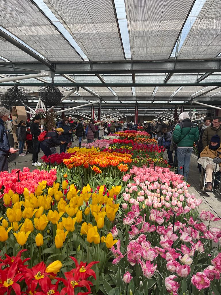 And speaking of oasis, at this time of the year, you cannot miss the famous Tulip Gardens – Kukenhof. So, despite a busy day, we decided to make a quick trip to these gardens, about 40 minutes from Amsterdam. “They are the famous gardens captured in the film Silsila,” the driver boasted proudly on the way in an effort to educate us of its fame and grandeur. There ought to be more films that have been shot there, I thought. Surprisingly, the only one I could think of was Queen – one that was shot both in Amsterdam and Paris…but no mention of the famous Tulip Gardens. Just as my mind was racing to think of some film and my hand was about to reach the phone to google, we turned a corner and the sheer crowds streaming in and out of a massive gate ground my chain of thought and the car to a halt.